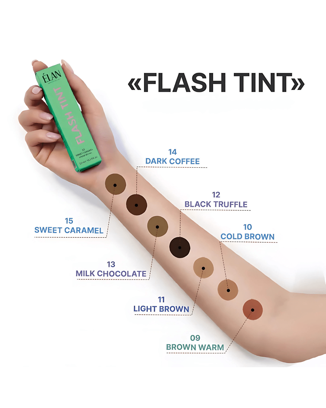 Zahvaljujoč posebnemu negovalnemu kompleksu FLASH TINT ne le poudari obrvi, temveč jih tudi neguje in ščiti. Hialuronska kislina poskrbi za globinsko vlaženje, niacinamid izboljša mehkobo in elastičnost, kolagen krepi od znotraj, medtem ko aminokisline in arganovo olje ustvarijo zaščitno bariero, ki obnavlja ravnovesje in sijaj.